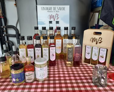Vinaigrerie artisanale à La Biolle, Millefaut & Badin produit des vinaigres en fûts de chêne, à partir de vins blancs et rouges du vignoble de Savoie.