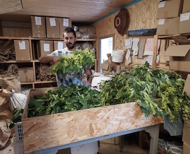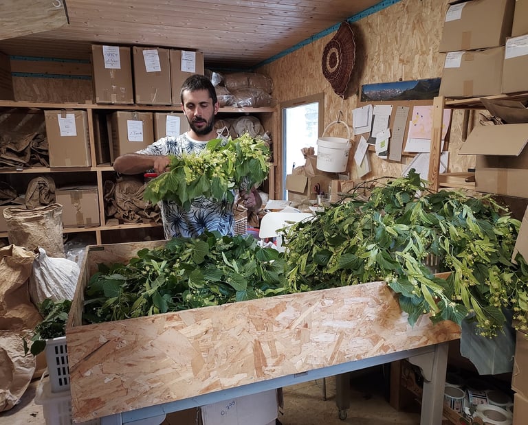 Dans les ateliers de Cusy (74) et Thoiry (73), les plantes sont séchées, triées et utilisées pour la fabrication de sirops, tisanes, aromates et liqueurs.