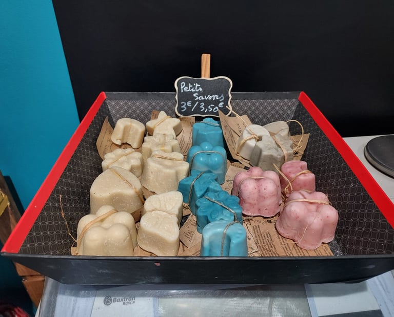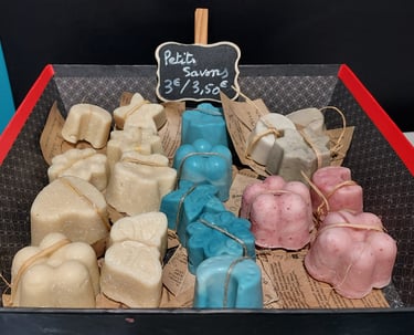 Les huiles végétales sont en grande majorité locales et bio, et les savons ne contiennent ni colorant ni parfums de synthèse.