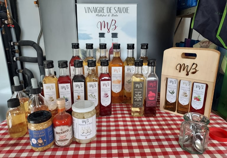 Les vinaigres de vins blanc peuvent être déclinés : balsamique, ail noir, framboise, génépi ... pour plus de diversité.